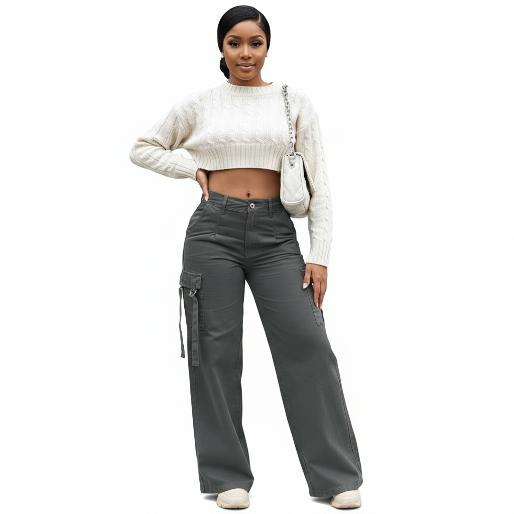 5 reviews for Casual patch pocket cargo straight pants
