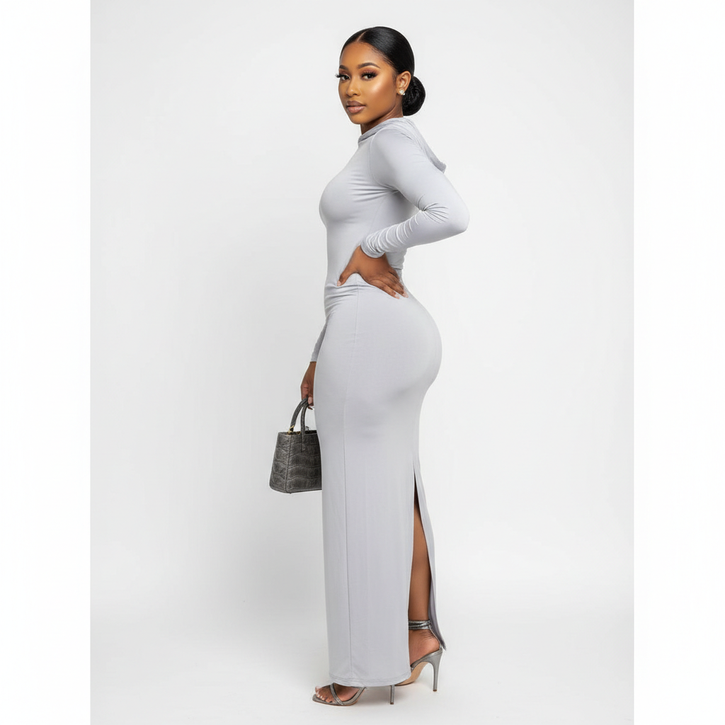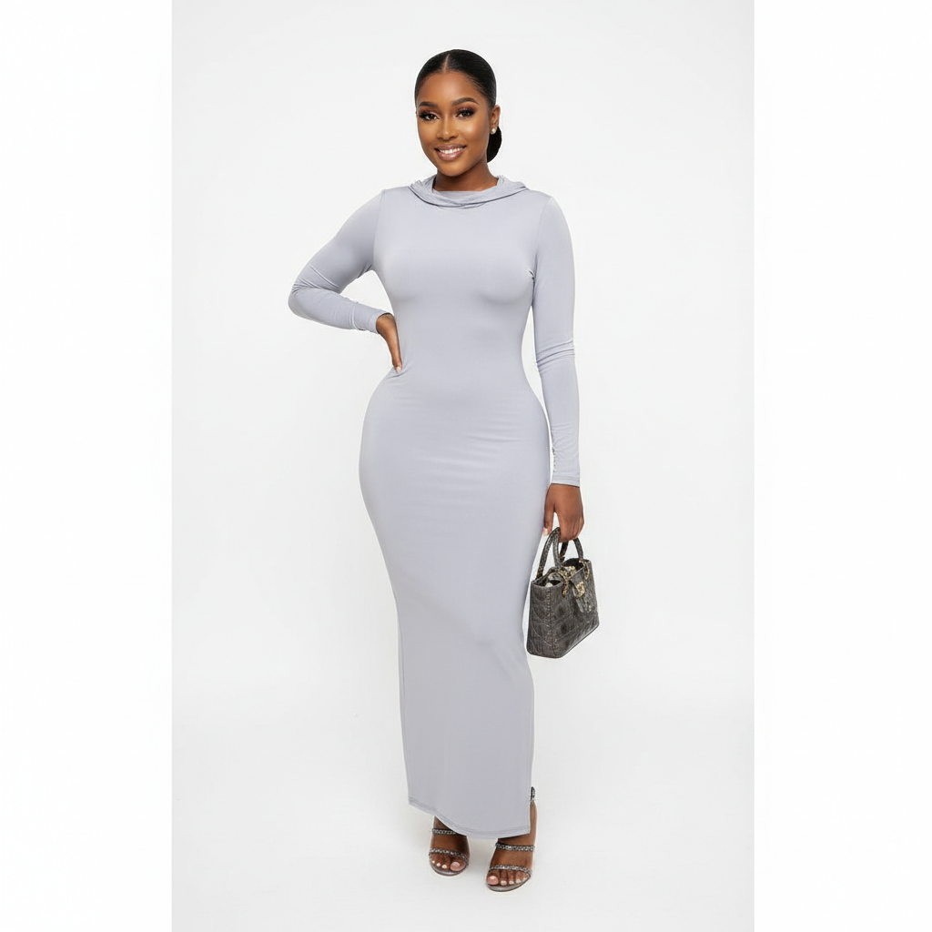 2023 new spring and summer European and American style cross-border women’s solid color long tight hooded pullover dress wholesale for women
