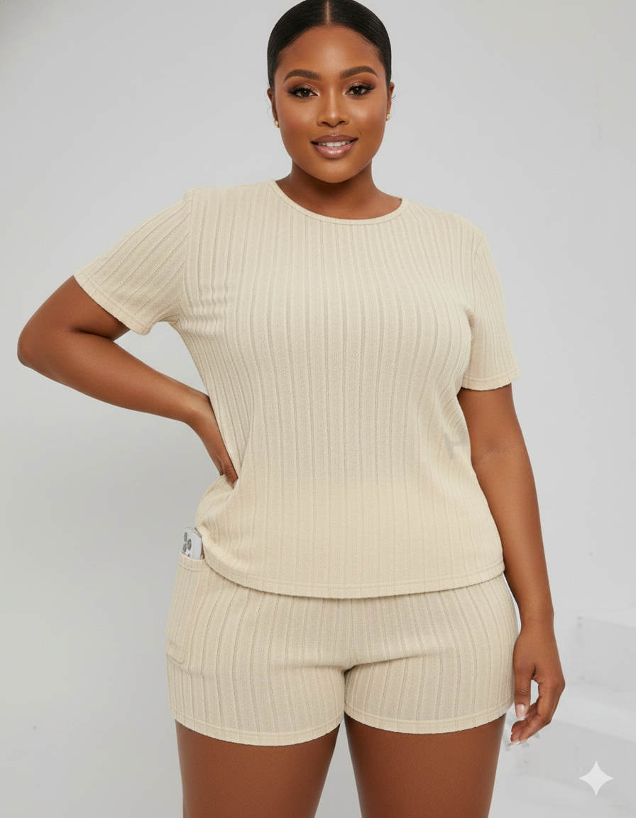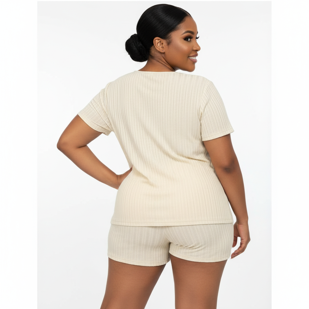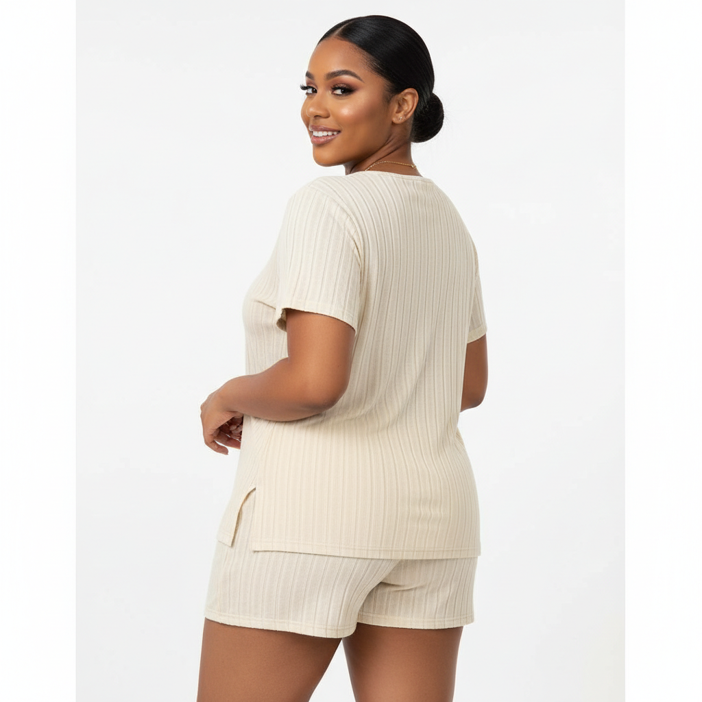 Plus Size Women’s Spring And Summer New Style Commuting French Fashion Casual Home Slit T-Shirt & Tight Shorts 2 Piece Set is designed for comfort and style. This set includes a slit T-shirt and tight shorts, perfect for both casual outings and relaxing at home. The T-shirt features a trendy slit design that adds a touch of elegance, while the tight shorts offer a comfortable fit. Made from high-quality, breathable fabric, this set ensures you stay cool and stylish during the warmer months. Ideal for commuting, casual wear, or lounging at home, this 2-piece set is a versatile addition to your wardrobe.