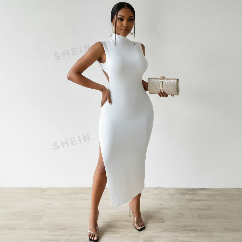 SHEIN Slayr Ladies’ Solid Color Hollow Out Split Dress